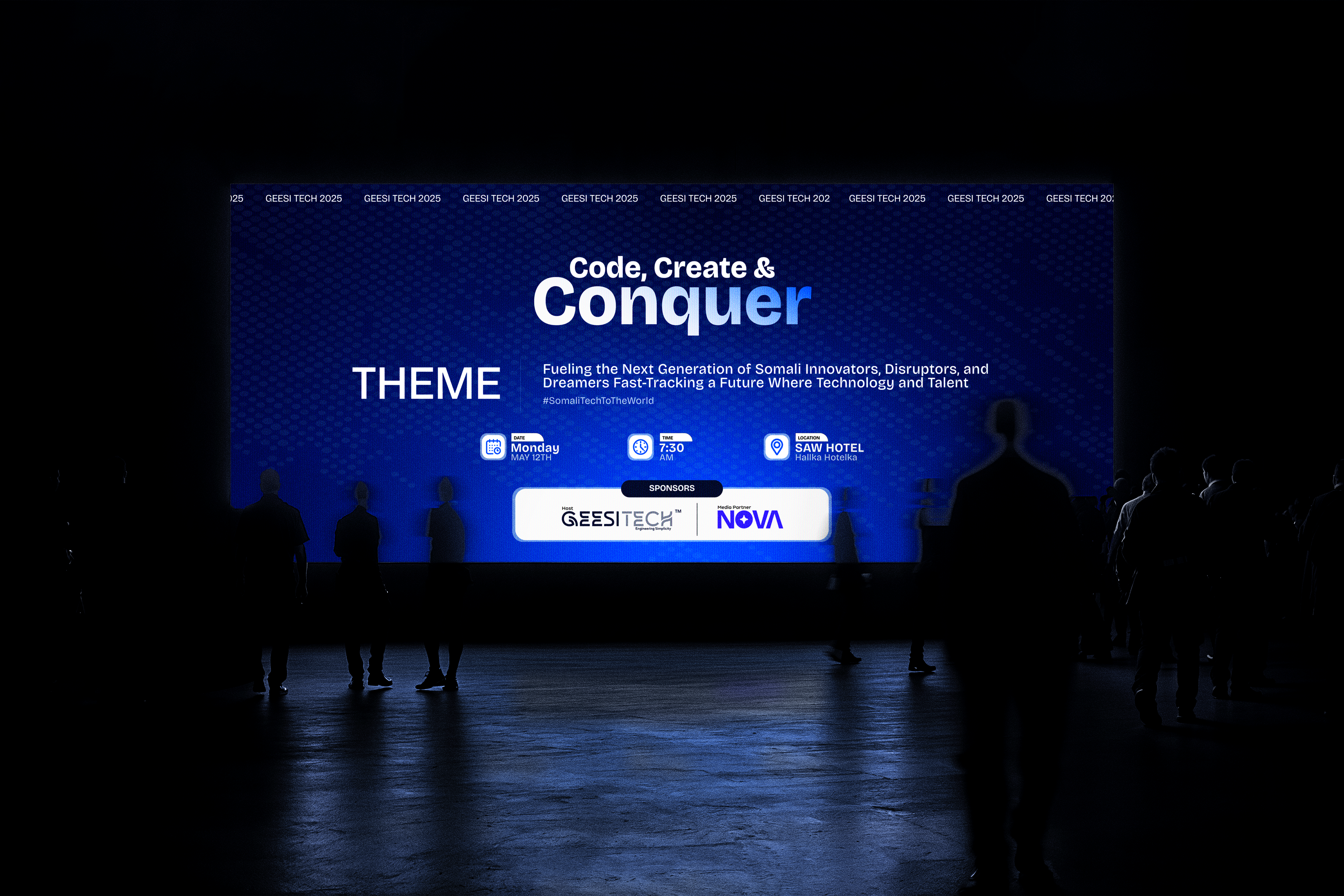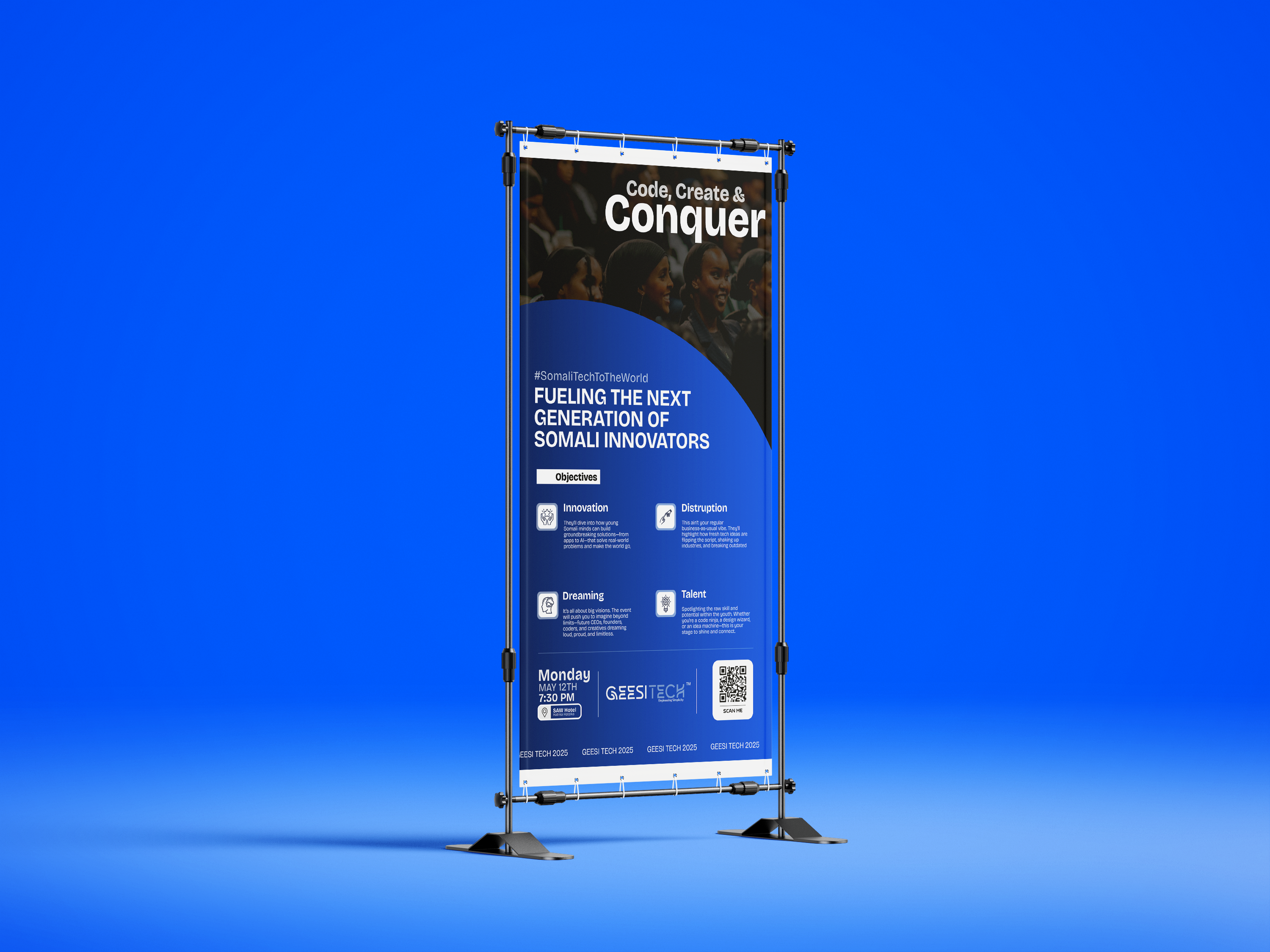 Complete event branding including digital assets, promotional materials, and on-site signage system for tech conference.